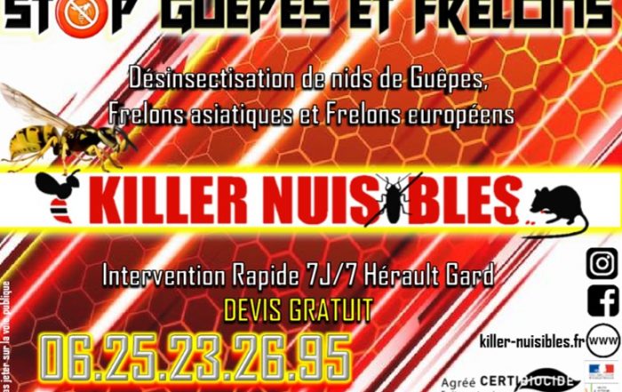 - Spécialiste dans la Désinsectisation et Destruction des Guêpes et Frelons, j’ interviens sur le département de l’Hérault et du Gard. J’établis votre devis rapide et gratuit sur simple appel. Mes interventions sont 100% Garanties.